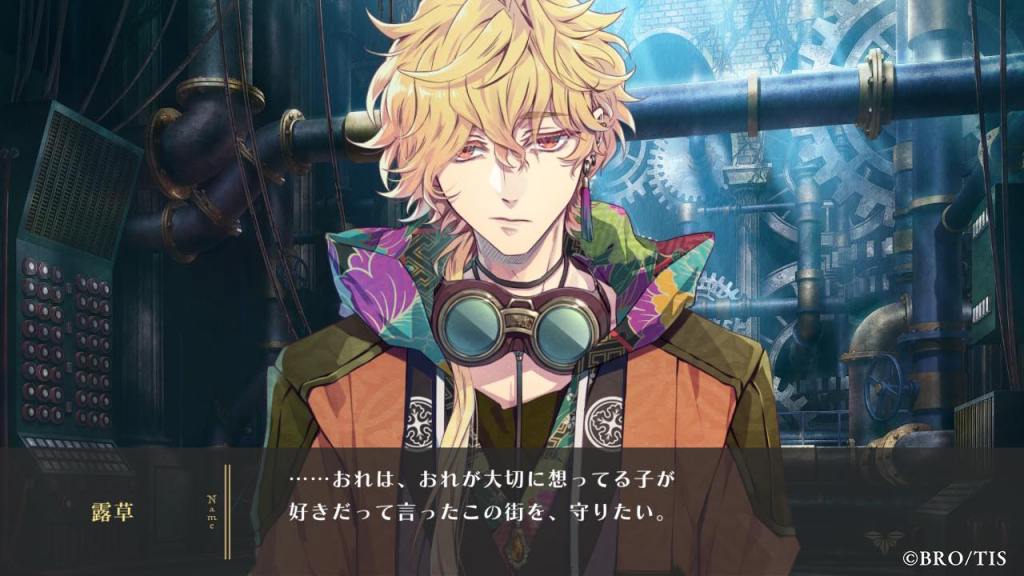 To throw another wrench into the mix, there is this disease called hariyamai (“glass disease”) that is exclusive to people of the Senka as in order to keep Itehari from the air, the steam machines will produce poisonous gas which poisons the lungs of the people of Senka. This is an irreversible disease that patients will eventually die a painful suffocating death from. Tobari also has this disease and has been getting experimented on by Dr. Shouhaku – who invented Sumizome by the way – but this route has way too many plot points going on that I need to be picky about who to mention before people click out of this page.