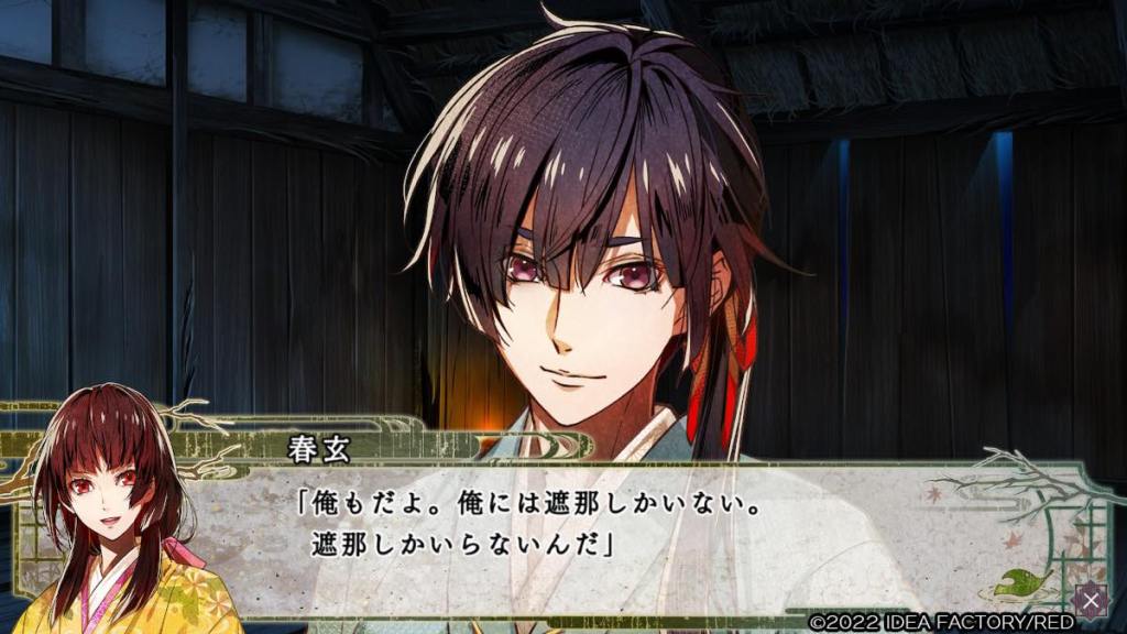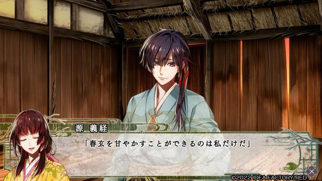 Good end: Yoritomo relieves Shana of her duty to the army, as she is not even the real Genji heir, and she gets to be with Tsugunobu and return to Hiraizumi. [I am slightly bummed by this ending because throughout both games Shana made it clear that her dream is to bring this world peace, end wars, and for people to live happily. The fact the war is still going on and she just peaces out because she no longer carries the Genji name is OOC for me. I’m not saying she is not allowed to pursue her own happiness but that’s not what Shana does; she is not a romantic.]