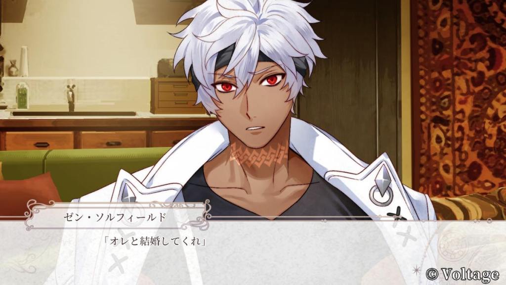He then asks Anastasia to marry him. They have a wedding CG as well. I know this is from earlier on in the route where he still has the tattoo on the neck, but posting anyways