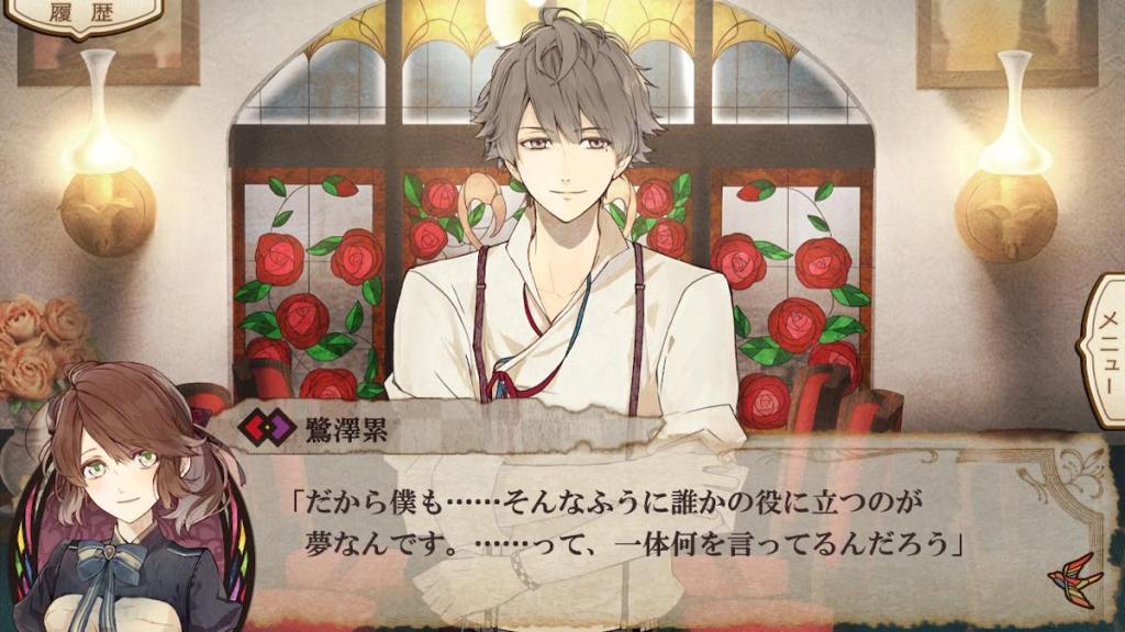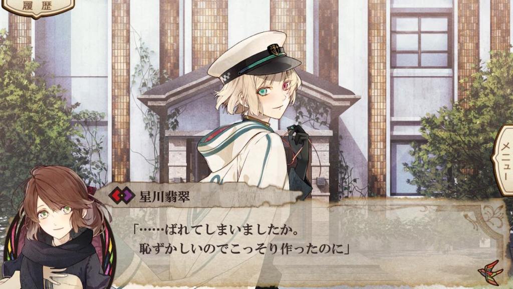 Remember in Hisui’s route, Shouko likes collecting kaleidoscopes…? Rui took on a part-time job washing dishes at Nightingale in order to get close to his target. However, he is vaguer and vaguer about his whereabouts and plans. Tsugumi this whole time just sits home I guess??? because she doesn’t need to patrol anymore?