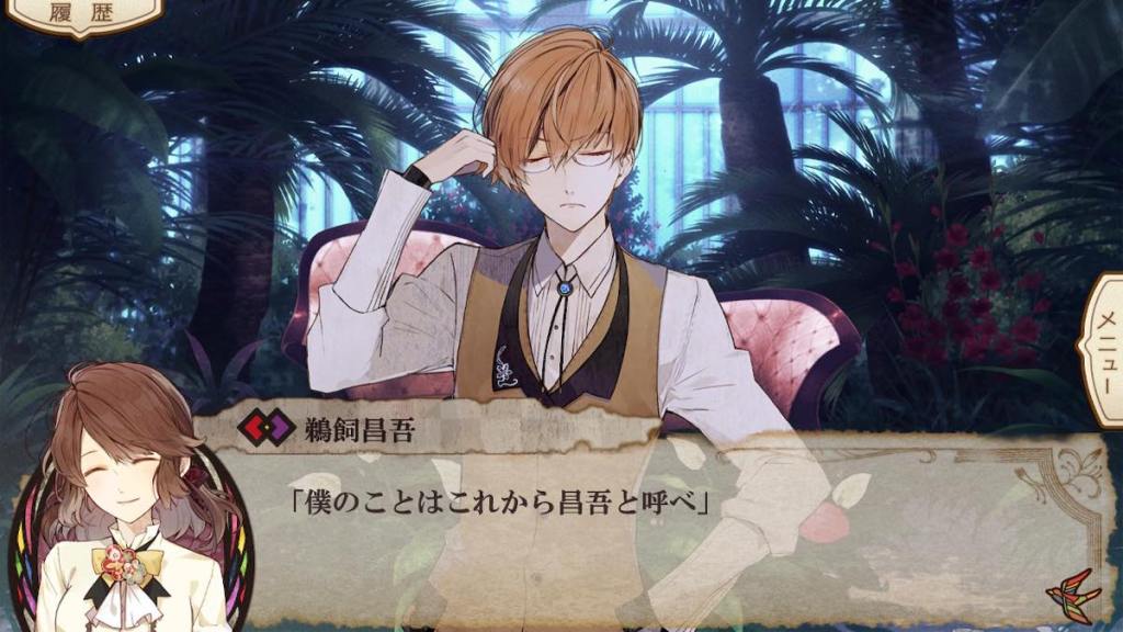 Tsugumi finds Shougo in the greenhouse. He asks her if she and everyone else thinks he’s a joke and a coward for attempting suicide and running away to hide here. He asks if Tsugumi thinks he is weak. Tsugumi of course does not think of Shougo that way. She also clears up the misunderstanding around Owase. He then huffily replies he will pick her dress at the next ball. He then asks Tsugumi to stop acting so formal and distant around him and call him “Shougo” instead of “Ukai san”.