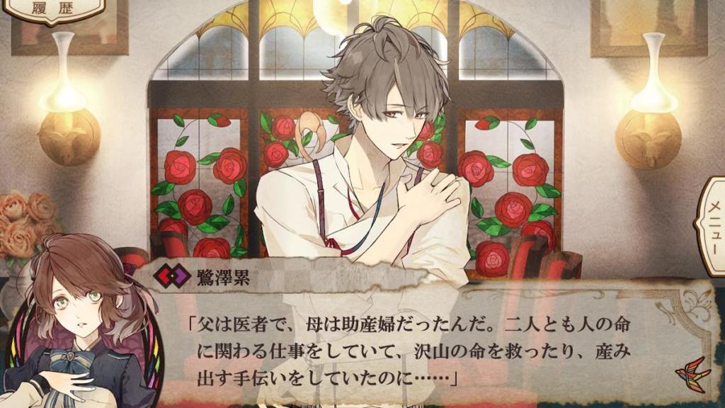 The main event of the route is the serial killings of young women in Ueno Park. The victims, exclusively young women, are discovered in the early morning to be strangled, with a branch of lilac placed in their mouth, and a novel by Shizuru left at the scene of crime. Any fan of Shizuru knows that his favourite flower is the lilac. Shizuru attracts a lot of suspicion. However, it would seem way too obvious that he purposely plants evidence pointing toward himself. Shizuru tells Tsugumi that he doesn’t have anything to do with this and asks her to stay safe and always have someone accompany her at night near Ueno Park.
