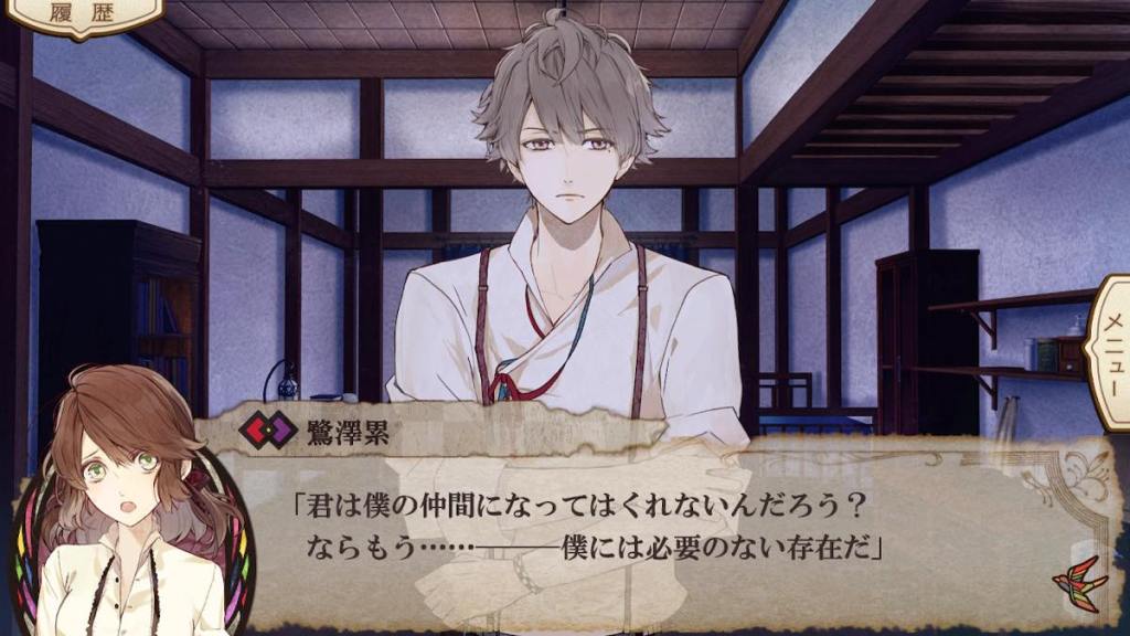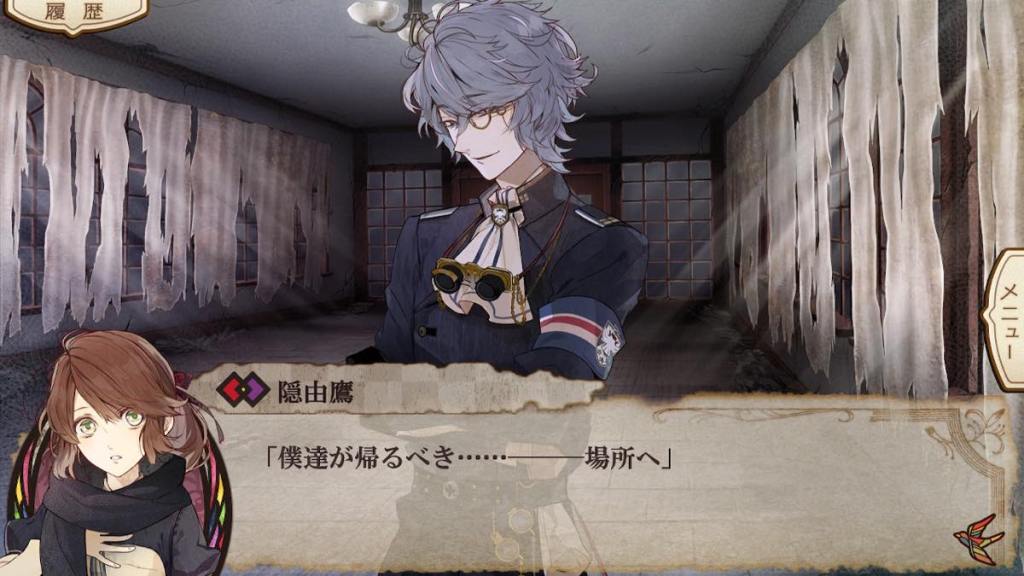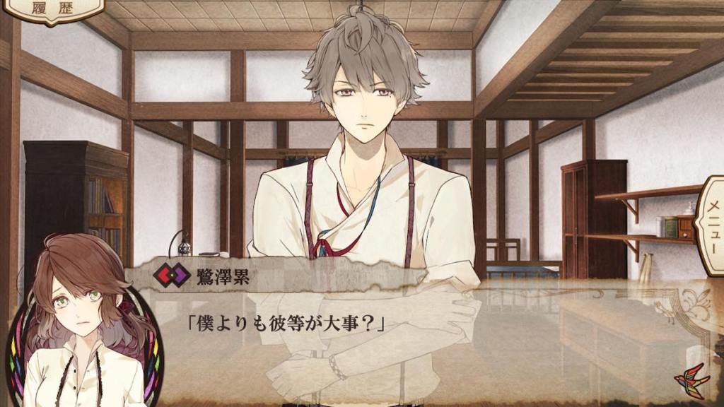 What a hot mess of a route. The authors clearly tried to use this route to tie up “loose ends” and answer some buried questions from the common route by assigning Hayato as Tsugumi’s fiance and giving a conclusion to Hitaki’s murder. One can argue that Otomate wouldn’t just hire Midorikawa to voice anyone and he clearly was a big character but then what did Okitsu do? I still have zero idea how it changes anything with Hayato being Yashiro’s heir other than to give him an identity “befitting” for a beauty like Tsugumi, nor do I have history between how he became to be Yoshikiri’s kouhai. There is a Chinese meme called “for this bit of leftover vinegar I had to make a fresh batch of dumplings” and this is Hayato route in a nutshell. He shares the same route with the hidden character Nabari and as a result less screen time was given to him to develop his character and relationships around him. It just leaves such a bad taste in my mouth to end the game on this… Also if anything the biggest plot point should be Karasu/Shiginuma Takashi story aka Akira route. They instead chose to end on Hitaki’s story but we barely know anything about Hitaki.
