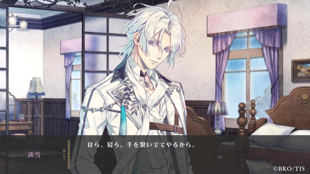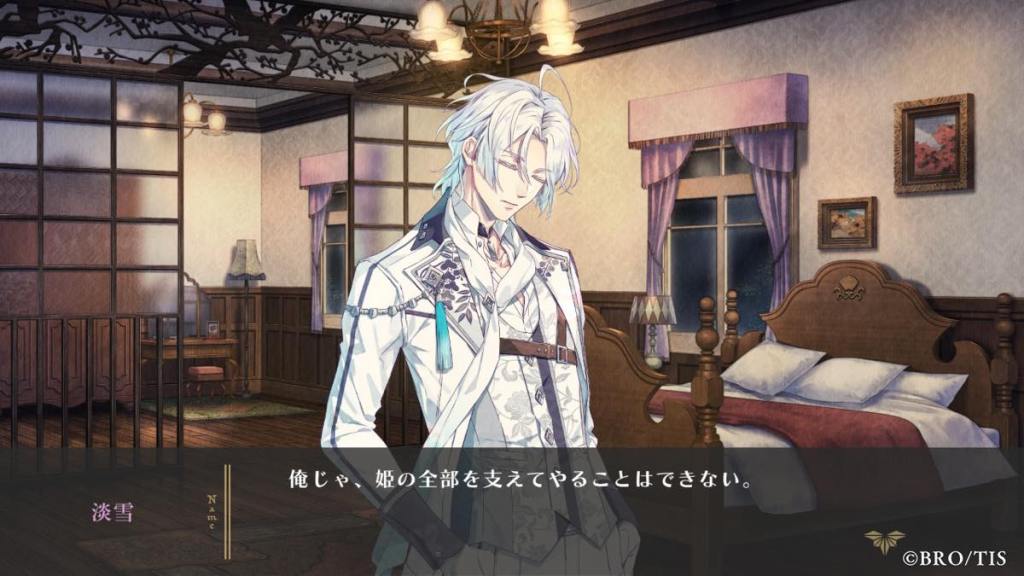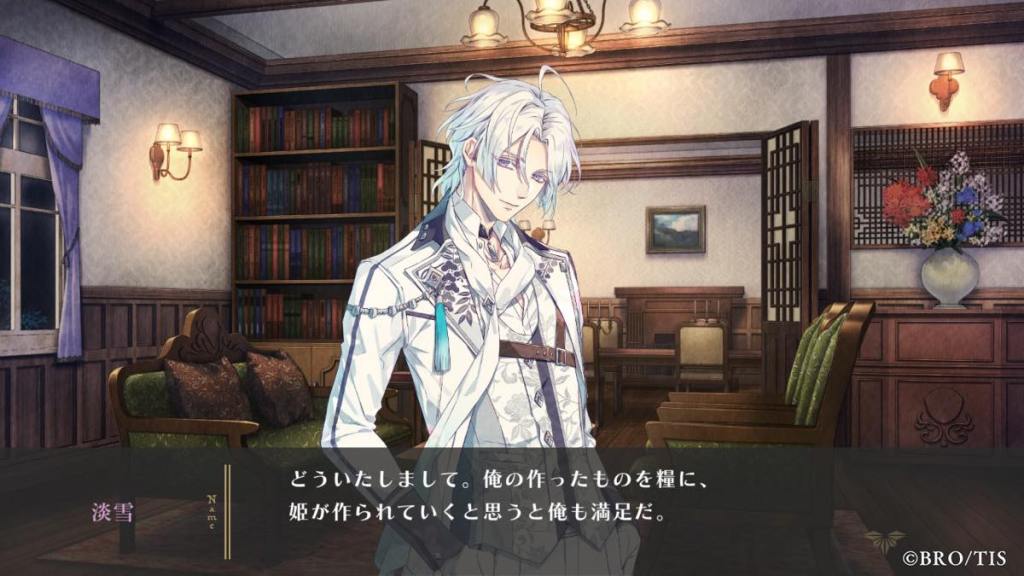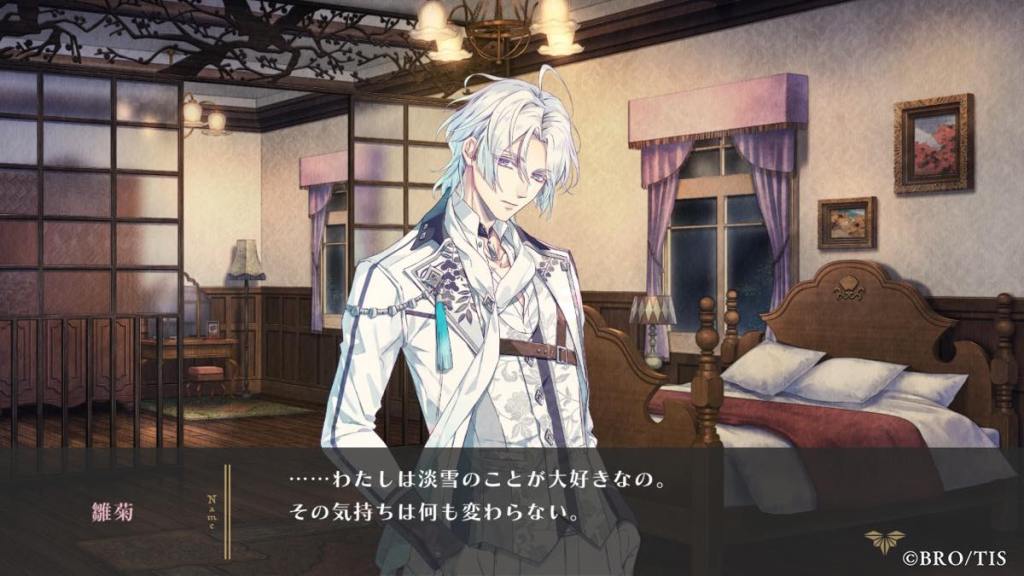 Yori then shares a bit about his childhood growing up with Tsuwabuki. There is a childhood CG but the quality was meh – RiRi chose to draw chibi but I think she should have stuck to her original style. Tsuwabuki is always calm, gentle, and a reliable big-brother figure to Yori. He will always let Yori have his stuff and look out for him. He has never been mad at Yori, even when Yori tries to get a rise out of him and even bully him. Yori says he dislikes Tsuwabuki because he refuses to believe he is that kind at heart, and that he is doing all of this because he has commoner blood and wants to get on his dad’s good side to be the successor. [Tsuwabuki is literally Jesus in Yori routes. I wonder if that persona will stay the same in his own route?]