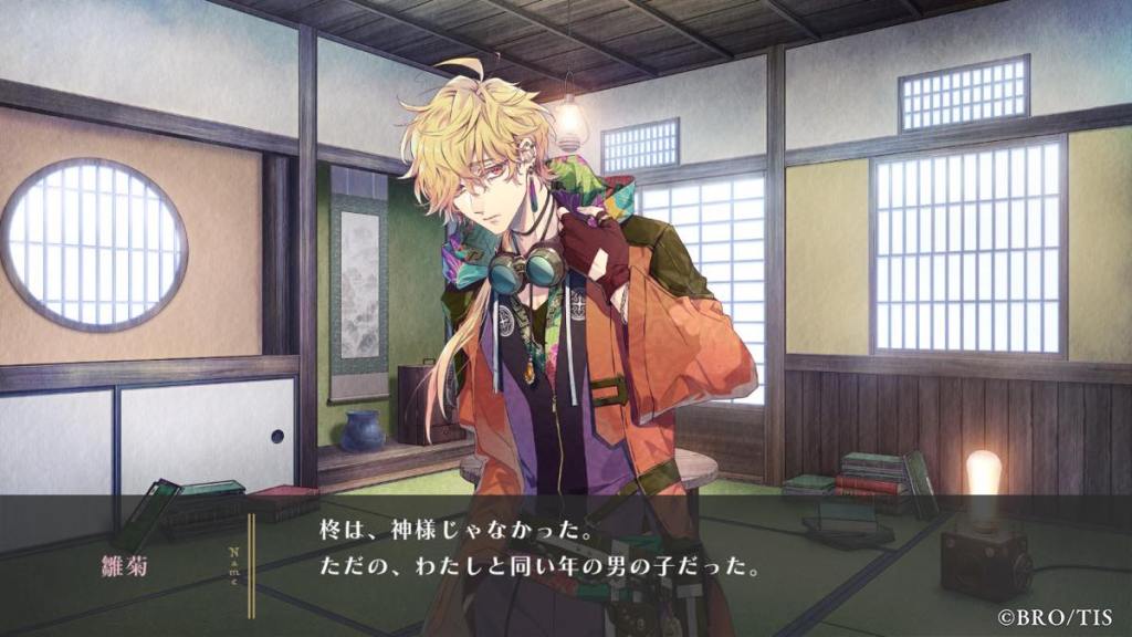 This route is a continuation from Tobari route. Shiranui is rebelling against Taijyu’s rule and sewing chaos in Itehari. In the beginning of the base game, we hear Taijyu telling the tale of how Itehari came to be. What starts this route, is Hiiragi’s monologue: he is at the core of the faith of people of Itehari, yet he is no God.