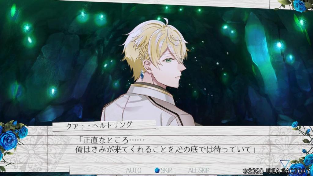 In this timeline, Gil takes Lachia to the birthday party where they celebrate together. The two spend time beside the lake after the party, with Gil telling Lachia what the world above is really like. He continues to act like a child with his memory conveniently being blank at everywhere that matters. He regards Lachia as someone very important, but at this point we and Lachia are all wondering why he chose her out of all people. Lachia goes home and has the same nightmare where she makes it above ground and suffocates. She wakes up and finds Gil somehow in her room telling her that her dreams are premonitions of the future. He then tells what Lachia has done in previous routes hinting that he knows the endings she had with Rudel, Leon, and Kuat, yet he has been waiting all this time for “the timeline where you choose me out of everyone”. Because Lachia received the blue rose from Garnet on February 26th, she is unable to rewind time before this date. However, it seems that no matter what she does, the ending is far from perfect, likely because she cannot rewind much time beyond one month prior to the ceremony.