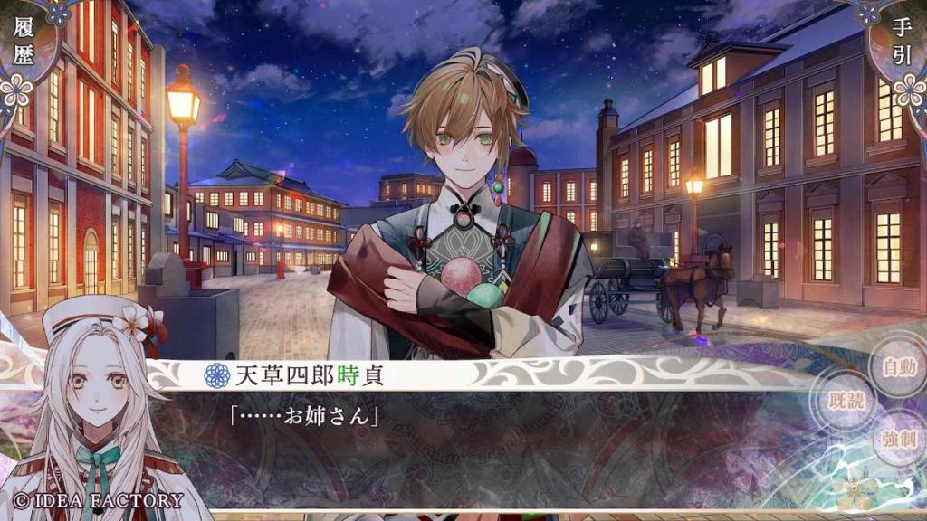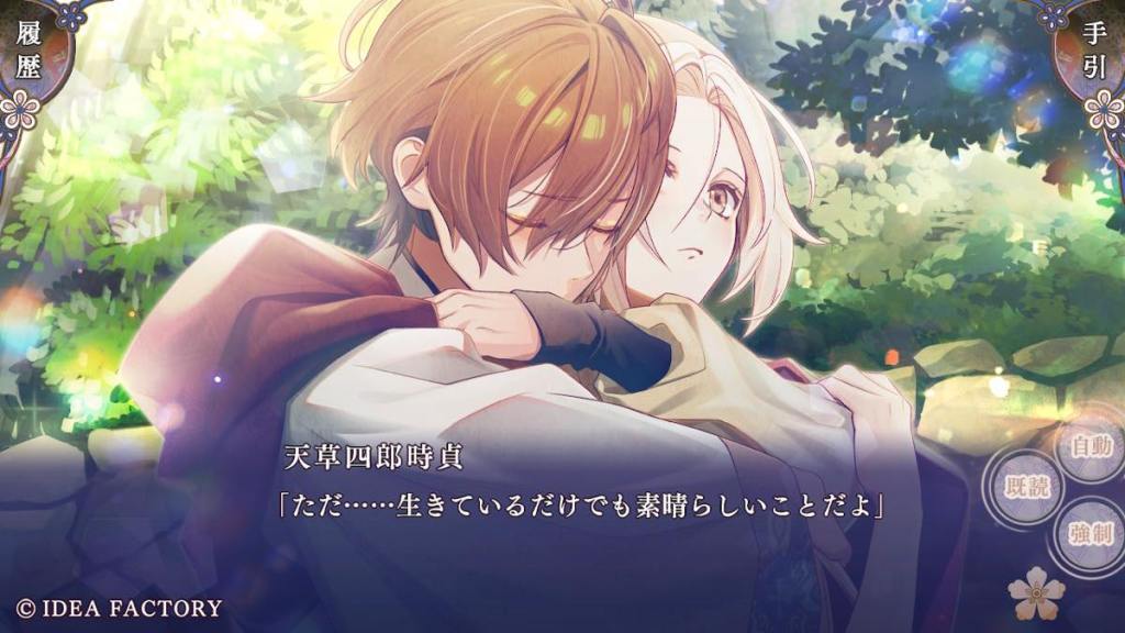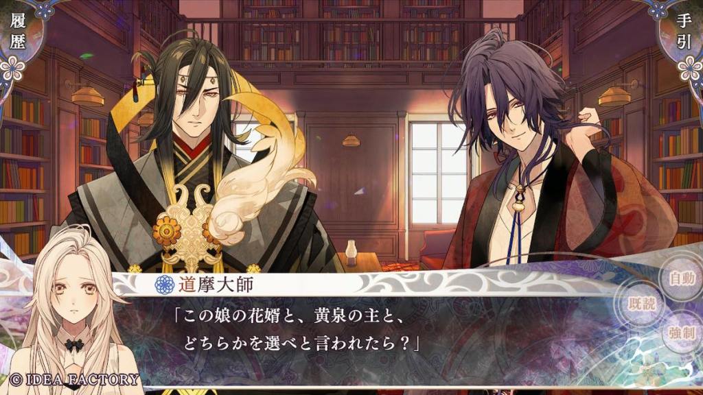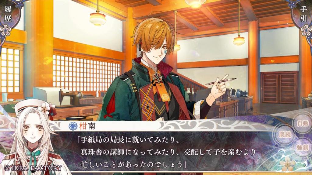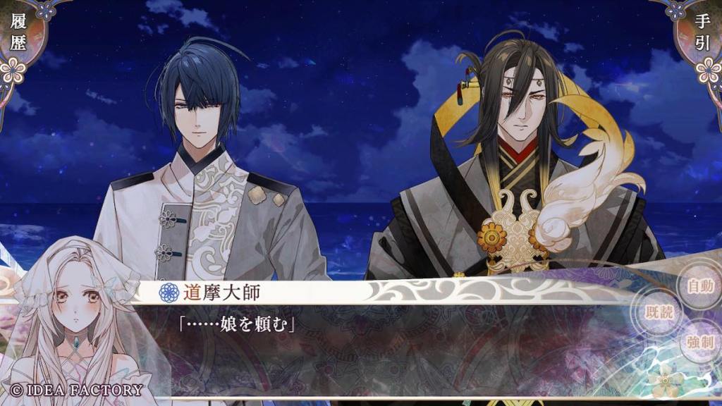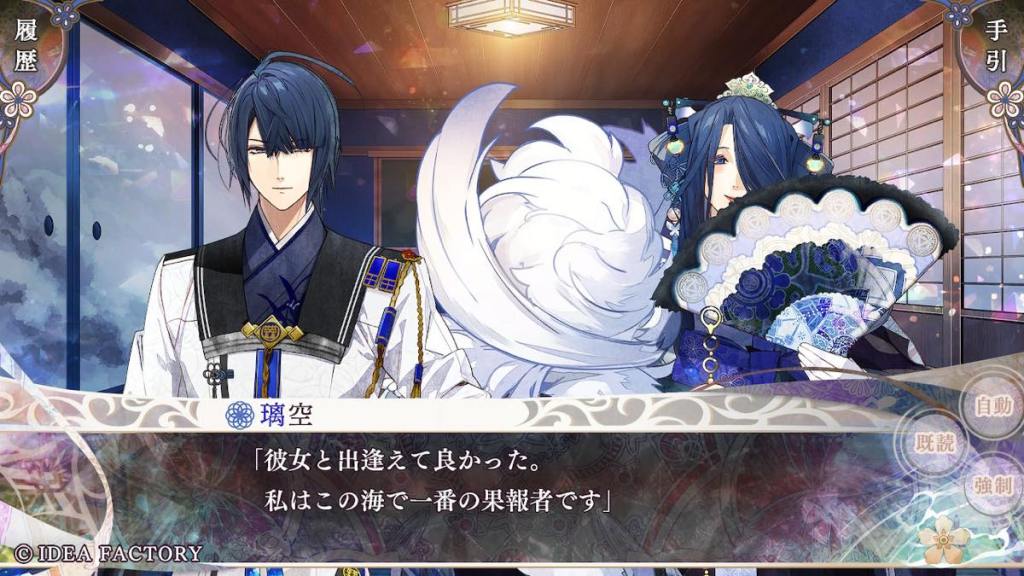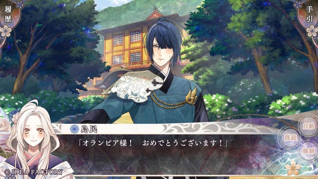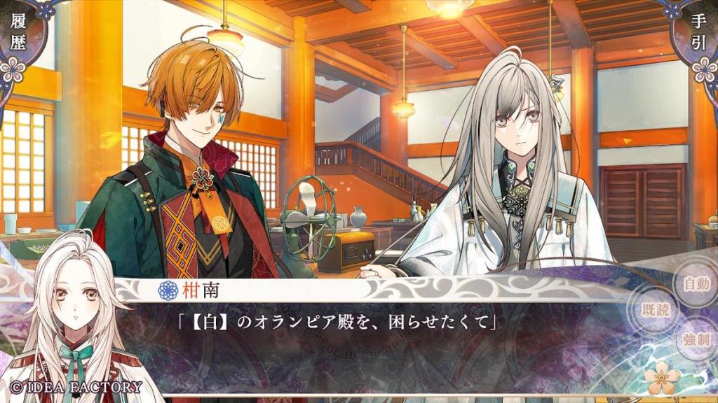 Olympia takes Tokisada to Tennyo island. The two share a cup of tea together. Tokisada apologizes for bringing Olympia into this turmoil, to which she replies that she feels reassured and not a problem at all with the fact that Tokisada wants to face difficulties alongside her. They are a unit after all. This is also what I really like about Tokisada route is that he treats Olympia like an equal and listens to her opinions. He shares his struggles with her. He also wants to protect her, but doesn’t do stuff like “oh she is too delicate for this I won’t let her know about it and just be a lone wolf”.