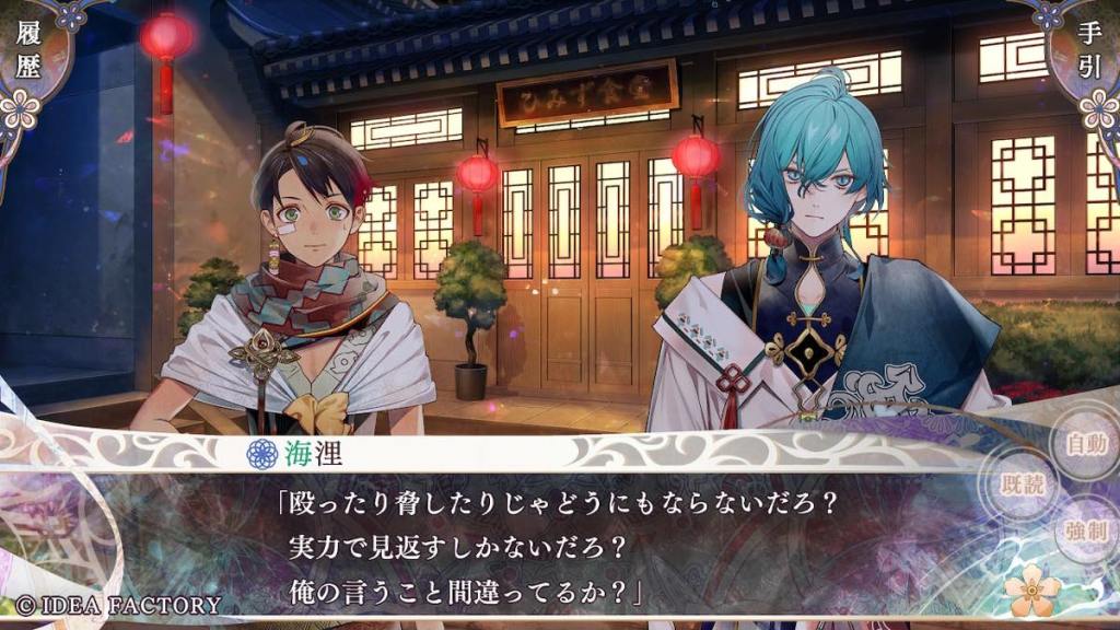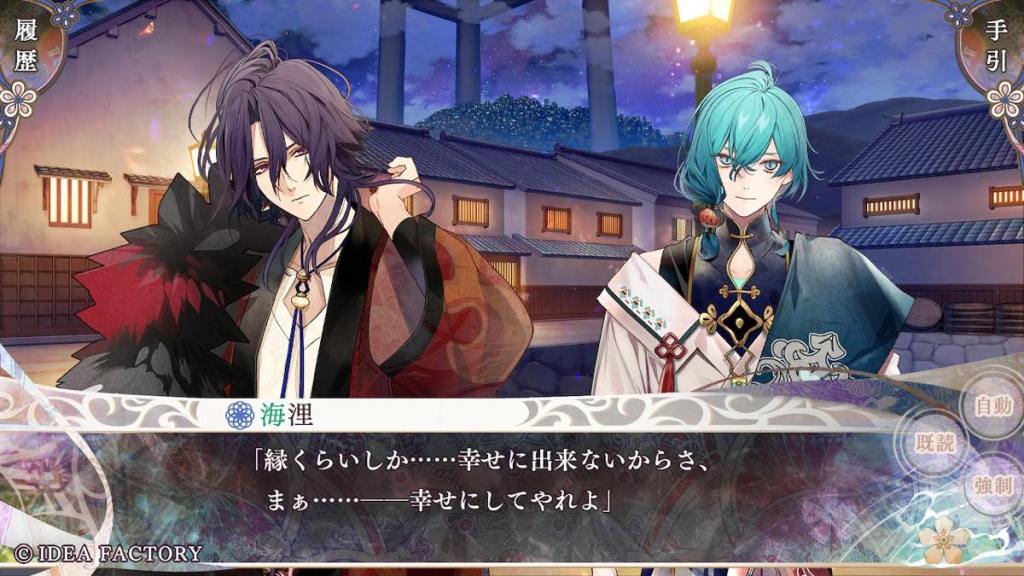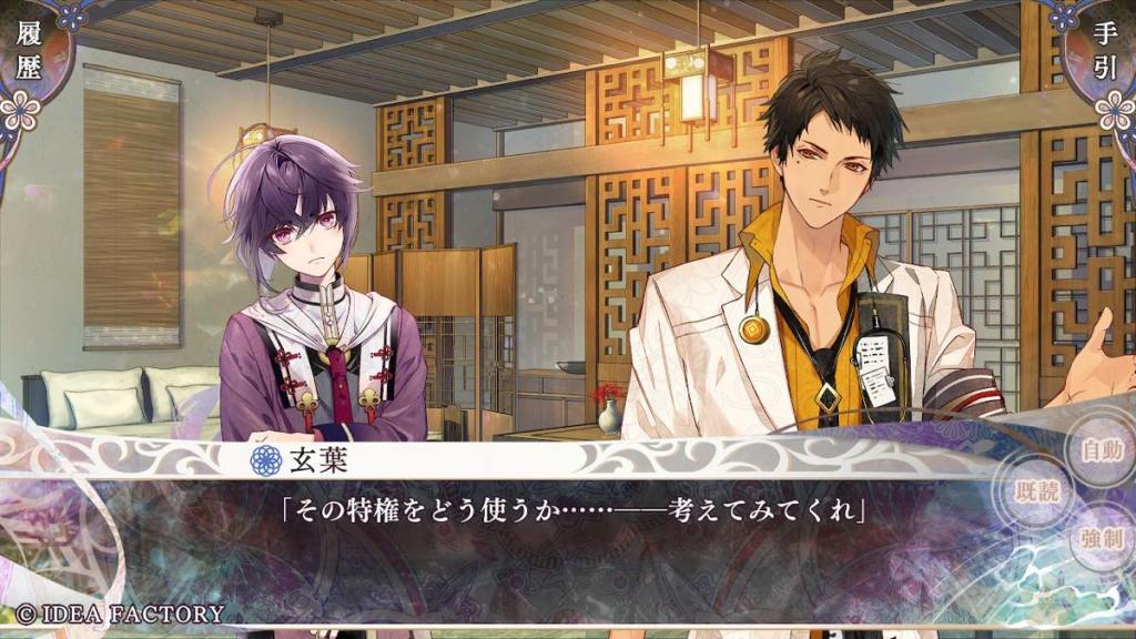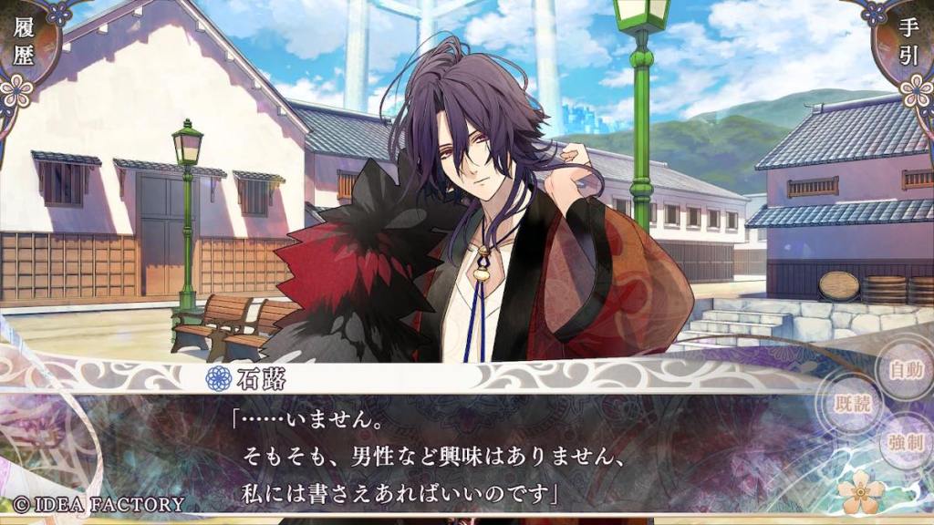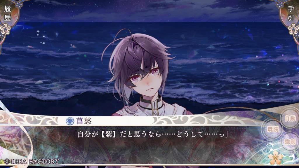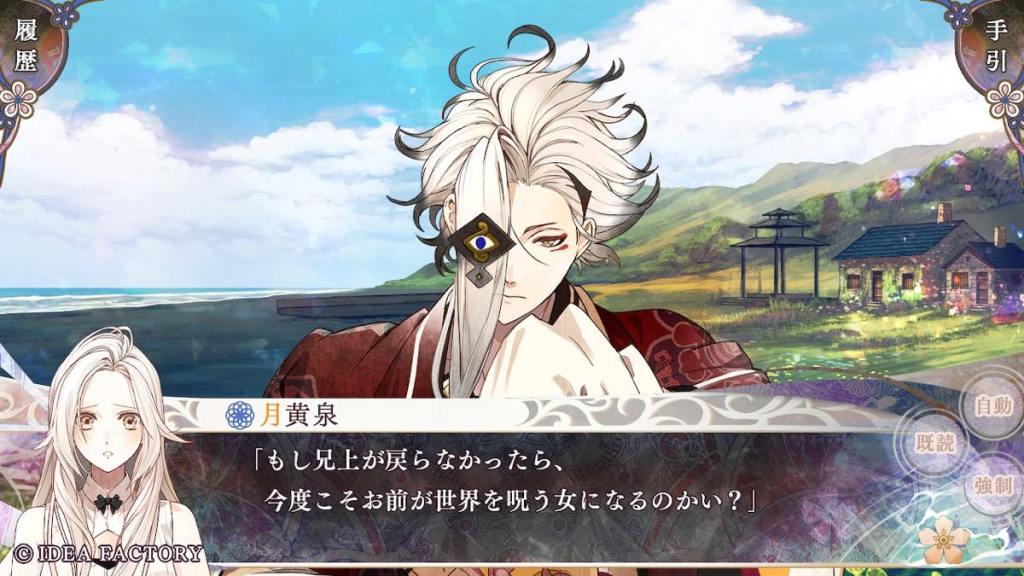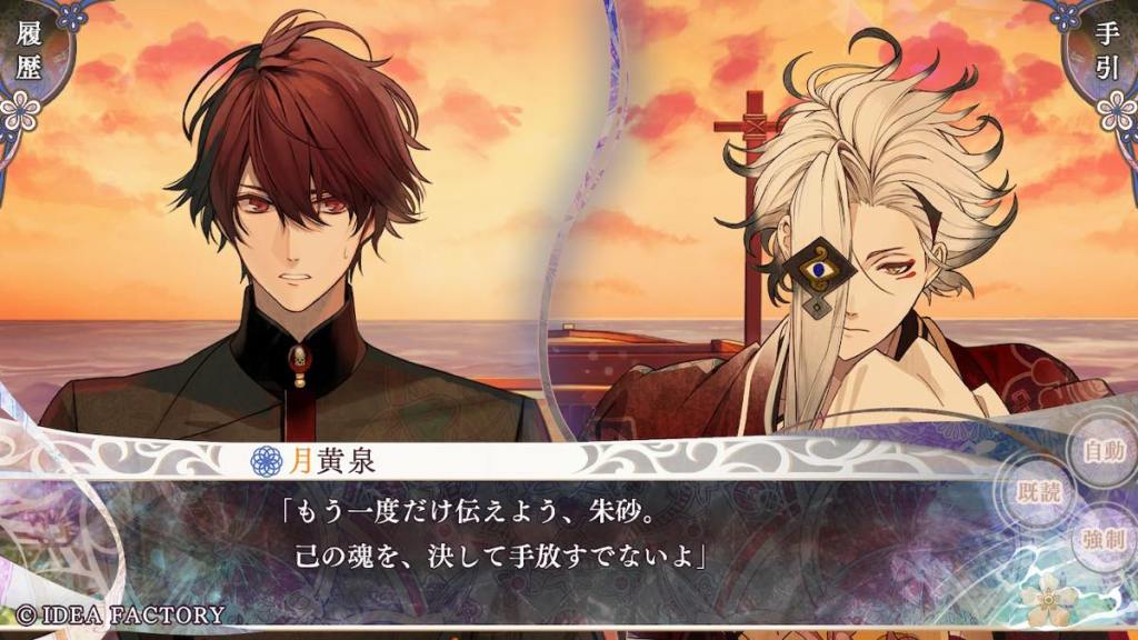 If Riku’s route focused on family or internal affairs, as “marebito” Tokisada’s route focuses on the colour-class conflict of the island, mainly the “colourless” class. This name was given to people who were born with impure colours (e.g. a mixture of more than one) and thus, cannot belong to their original single-colour clan, and have to be stripped of their rights and banished to Yomi.