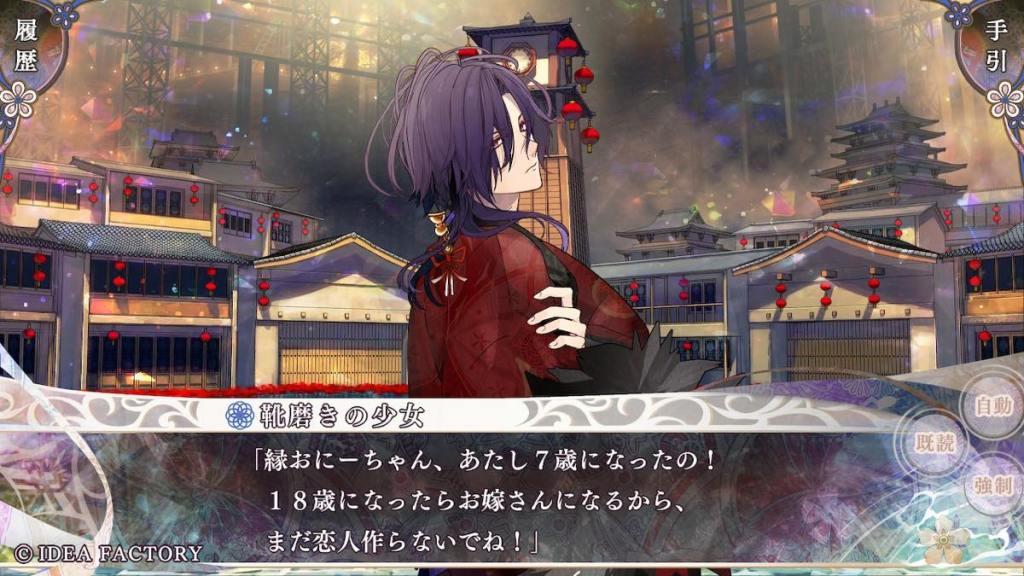 I did a double-take to see if this game was an FD or sequel because the two were so lovey-dovey in the beginning with those confessions and goodbye kisses before work like goddamn how is this route going to proceed from such a high. Shura is working on establishing the girls’ school that was mentioned in the main game. Riku is a changed man when going to Yomi and polite to the people he once thought were beneath them. In fact, as the next heir of the “blue” clan, Riku is actively working to abolish the “hazushi” laws (where people of different colour classes could not marry/be involved or face death/abolishment to Yomi), against much resistance.
