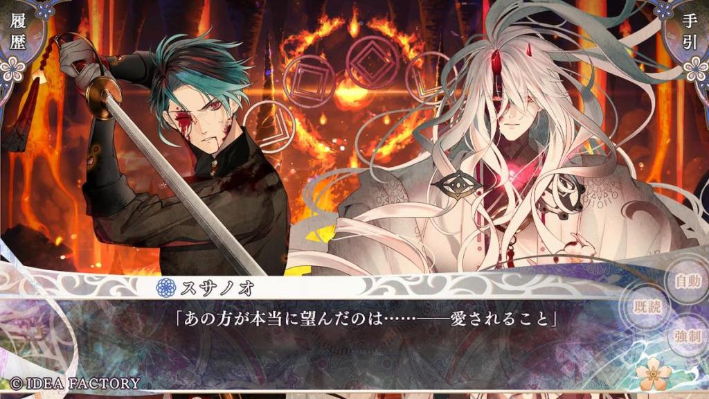 I was flying through this part but probably because there was some curse in Susanoo’s right eye (lol sorry), there was a CG where Susanoo plucked out his eye and positioned his sword towards Kagutsuchi. Susanoo tells Kagutsuchi that he is gravely mistaken for thinking Izanami wanted the world to end.