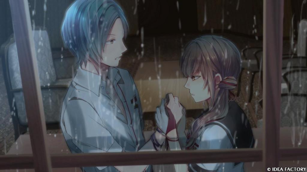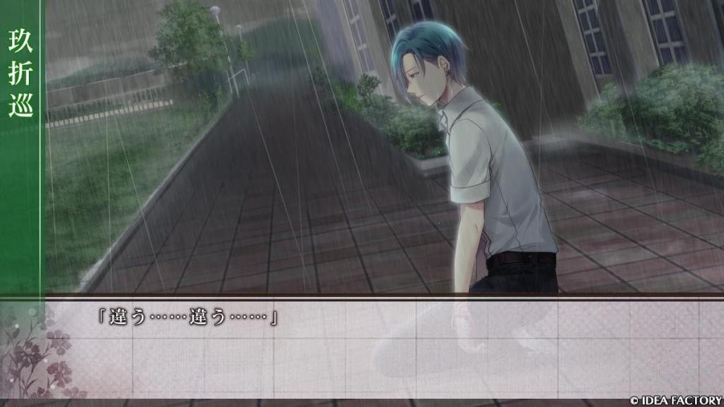 Bad End: Meguru is ordered to kill Hiroka by the principal. Ousuke learns about this and offers Hiroka a place to hide in secret, “hugging her gently from behind”, but she has to leave the school without telling anyone. Hiroka accepts. In reality, Hiroka is locked in some basement and becomes Ousuke’s lover. By the time Meguru realizes, Hiroka is already nowhere to be found. He cries in the rain, saying that everyone who needed him, no longer needed him. Grandfather, Ousuke, and now Hiroka…