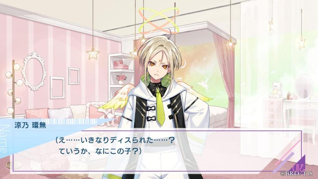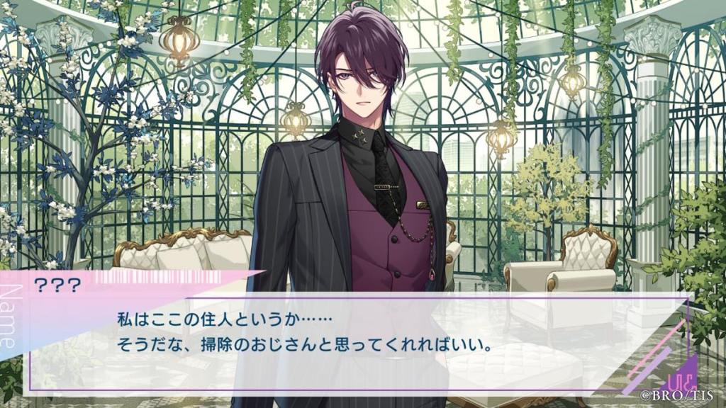 The next day, as Kanna is searching for bugs, she meets a mysterious man who pulls her into a bugged area then to his own room. He isn’t upfront about his identity or role here, but asks Kanna to be kind to Miyabi. This guy is also voiced by Okitsu Kazuyuki so we know he’s going to be a big deal in the plot later on. [How many famous otome seiyuu are we going to hire in this game? Broccoli: yes]
