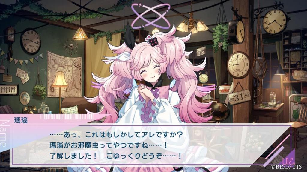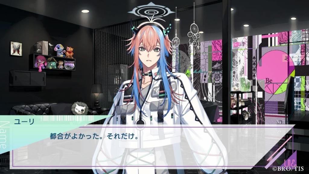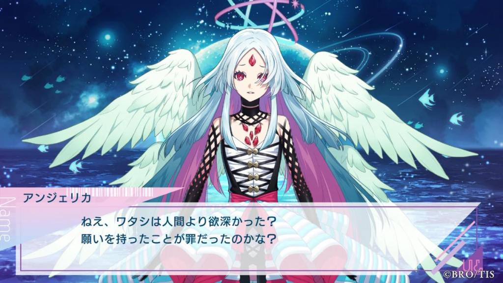 Soon after Ran is abducted by “Hidaka” early on in the game, Angelica shows her true form and reminds Ran that she was an AI created by him many years ago. The conversation at the very beginning of the game was between Ran & Kanna AI, later renamed to be Angelica. Even though Ran had long forgotten about her as she was some passion project, Angelica held onto the promise that she would be with Ran “forever” and grew a sentience of her own – strong willed just like the real Kanna. Eventually, Angelica was discovered by OG Hidaka & Miyabi who used her as the main frame/structure for UN:LOGICAL. The other spirits were also designed by Ran back in the day, but he didn’t remember. This is why Hotaru worships Ran so much to the point he is willing to betray Angelica, as Ran is his literal creator.