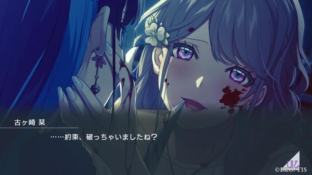 Kanna and Ran suddenly hear Hidaka call out to them for “tea time” and are teleported to his room. He is surprised that Kanna is here as he only wanted Ran but says whatever you can stay too. He makes Kanna see a vision and believe Ran to be dead. As Kanna screams, he pulls Kanna back to the game world. He turns into ??? who is the voice behind the bad end voiceovers: [Angelica’s CV is Lynn btw!]