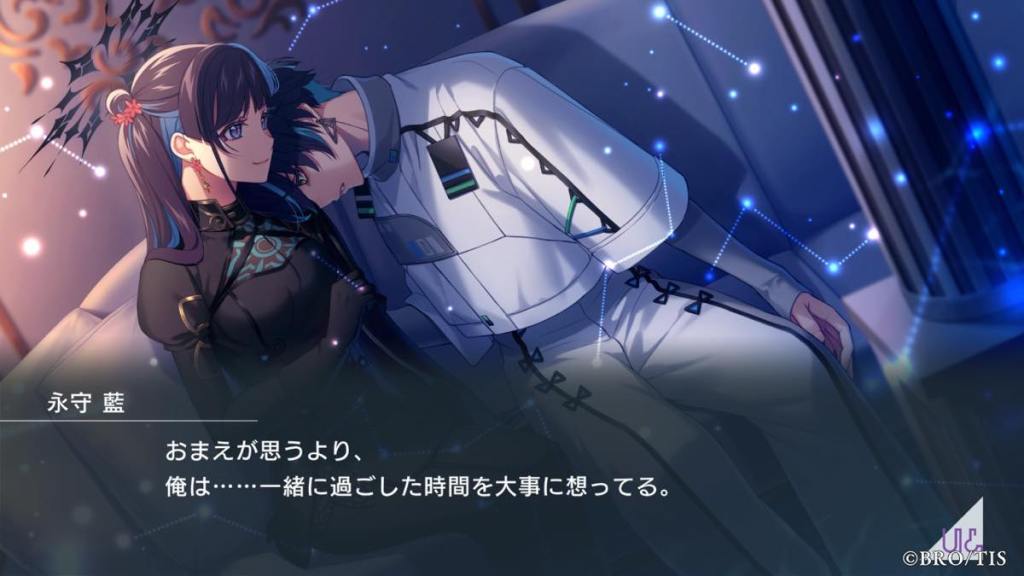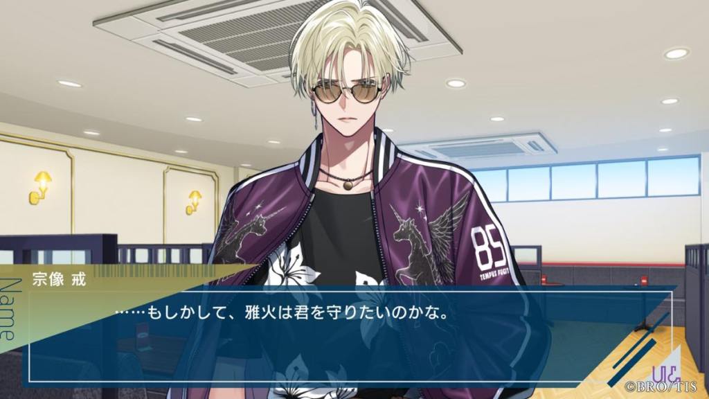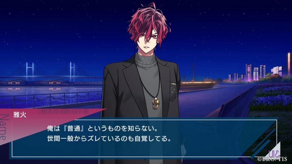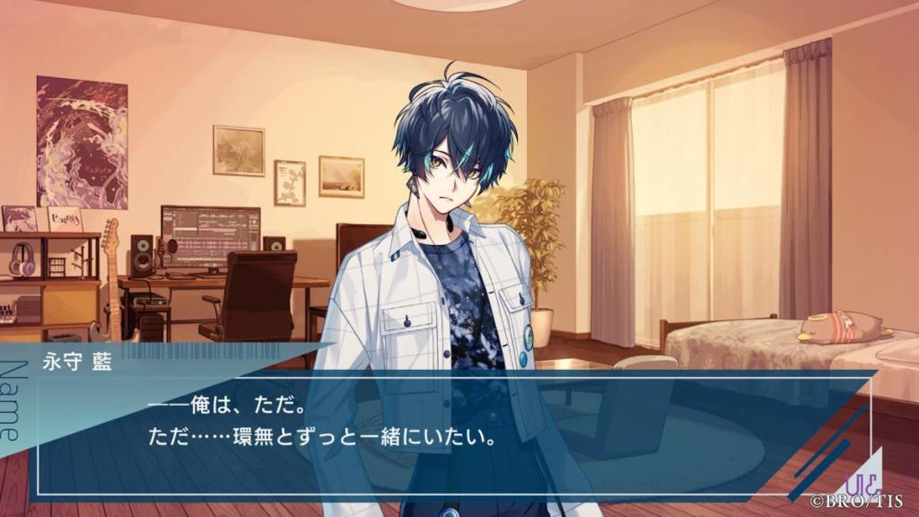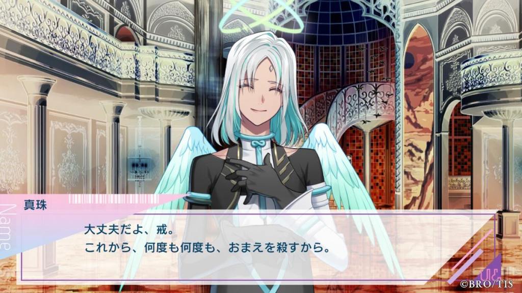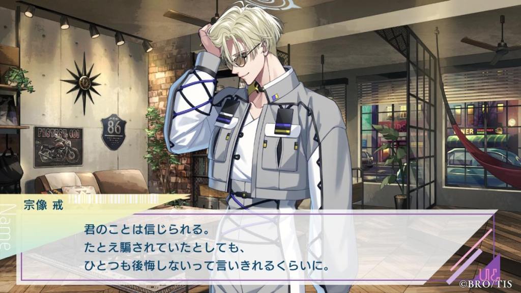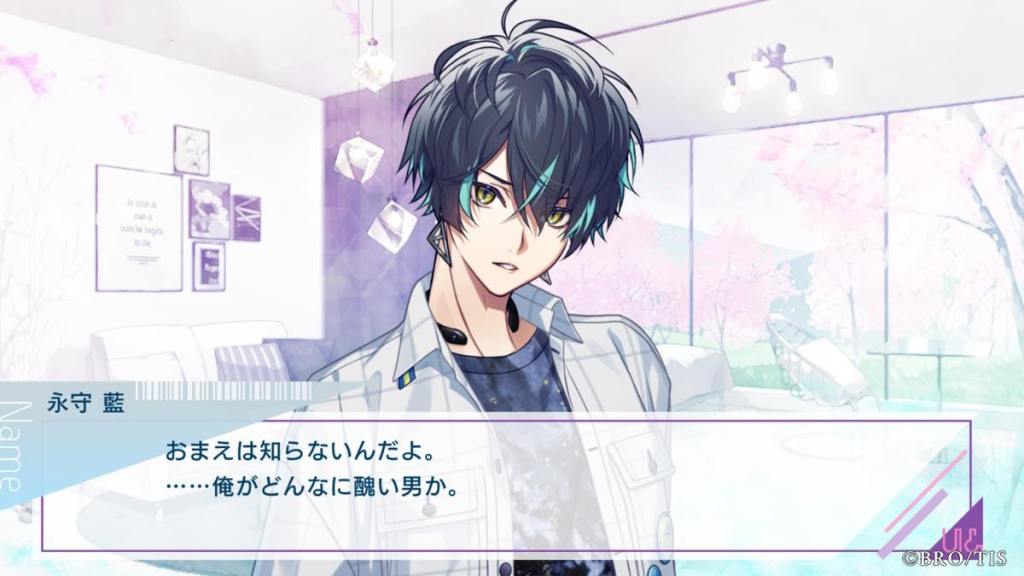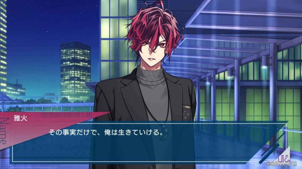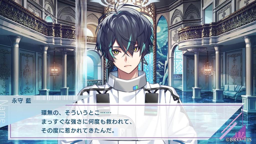 Thoughts: Wow, probably one of if not the most unconventional poster boy I’ve seen in otome games! Miyabi is an anti-hero who is straight up a sociopath because of his flawed upbringing. He shares special bonds with founded family, first Miyabi, then Kanna, people who he is very lucky to have in his life for caring for him. Even though he doesn’t say “I love you” out loud to Kanna, we all see how he changed and started caring for others in his own quiet and quirky way. His banters with Kanna were some of the best in the game. It’s so cute he is Latria, but more specifically Kanna’s OG fan, hence why the AI algorithms in other routes said he and Kanna are the most compatible and gave him Kanna AI lol.