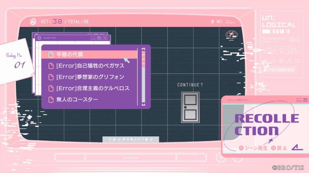 Bad Ends: Notable ones include – Kanna agrees to throw away her life for Miyabi so they elope to the next beta of UN:LOGICAL that Miyabi is rebuilding. It’s not that bad of an ending? but the writing implies that something is “missing” or “wrong”.