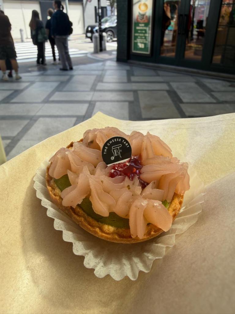 I’m doing this kind of as a pilgrimage for one of my friends in Toronto who is a fan of these tarts. Unfortunately, the Toronto chain shut down I believe during COVID. I got there too early but there was already a line-up. Needless to say, there were a lot more varieties in the Japanese flagship store than the generic ones in Toronto. I ordered the limited Sakura tart: