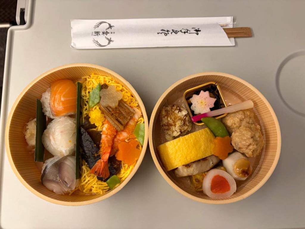 In my opinion, a train experience in Japan is never complete without ekiben so I got a little sushi set to go with my trip: