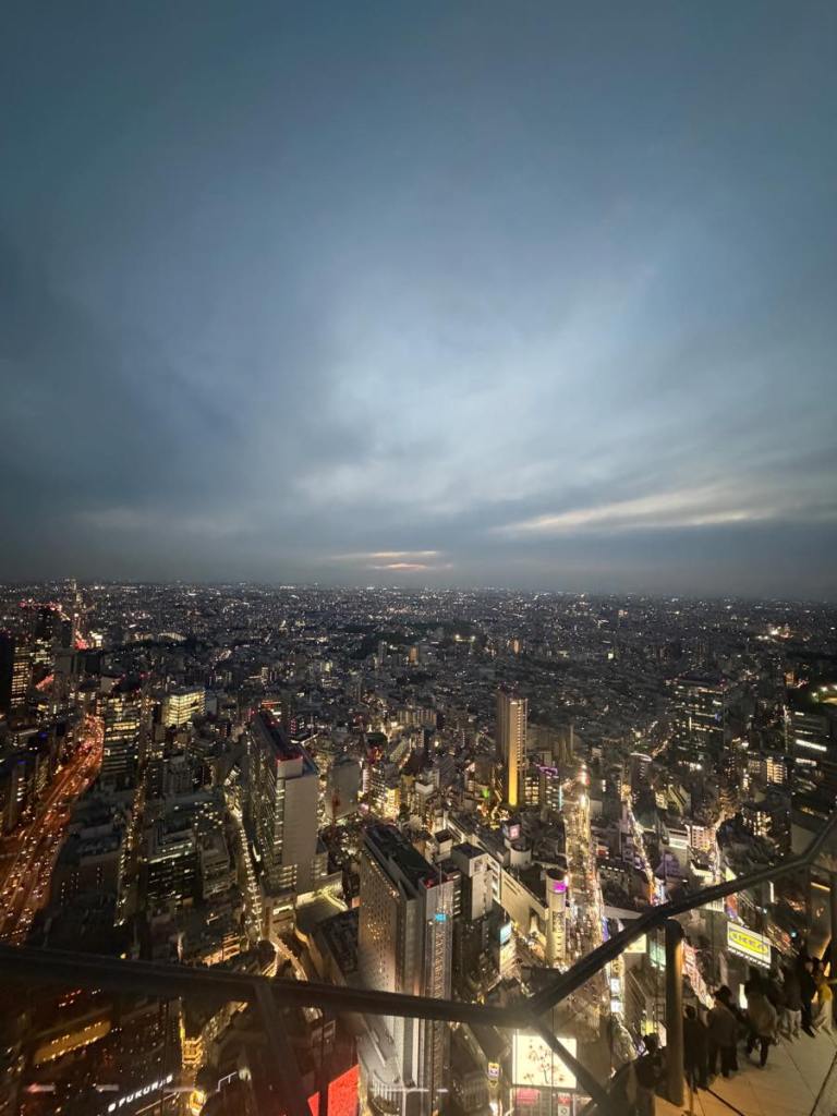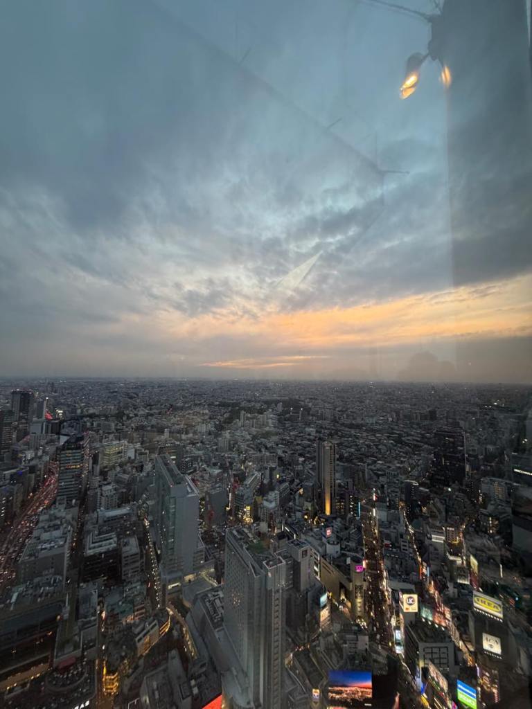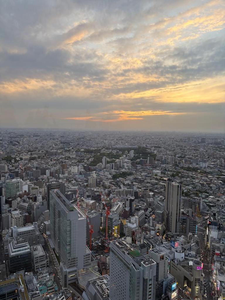 Lo and behold I wake up at 7AM to the sunniest day I’ve ever seen in Tokyo & all the weather forecasts now all say 0% rain!!! I’ve heard of how fickle Tokyo Aprils can be but was seriously not expecting this at all… So I scrambled to cancel the reservation at 7AM for Q-pot cafe with an apologetic message. I rotted away at Shibuya Sky bar with a matcha drink. Sunset that day was 6:22PM. Around 5:30PM I hit the roof.