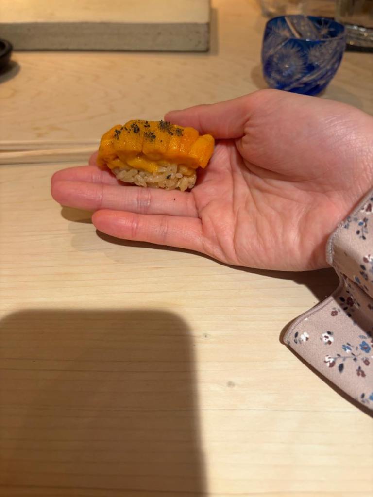 The last piece of sushi the chef asked me to hold out my hand (while the neighbouring Japanese couple laughed in a friendly way as they were asked to do the same) and the seafood was cold and jelly like and the weirdest piece of sushi I’ve had in a good way
